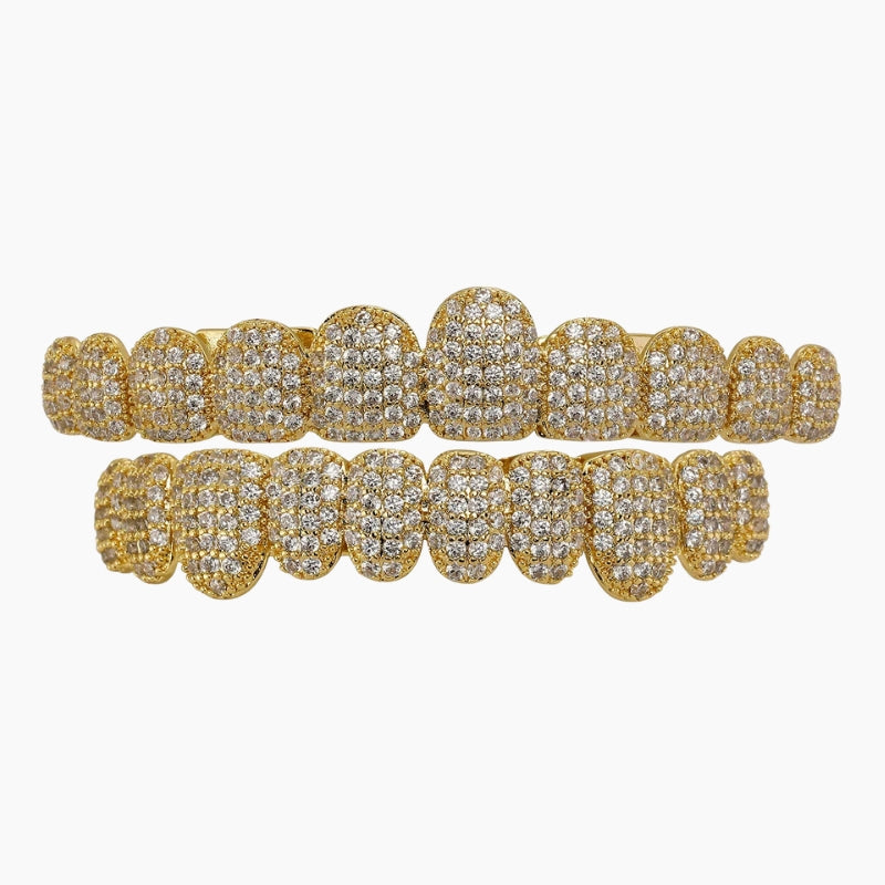Grillz Gold Row – Full Gold CZ Grillz SetGold Row Grillz feature a full gold-finished row design with 5A cubic zirconia stones set across each...